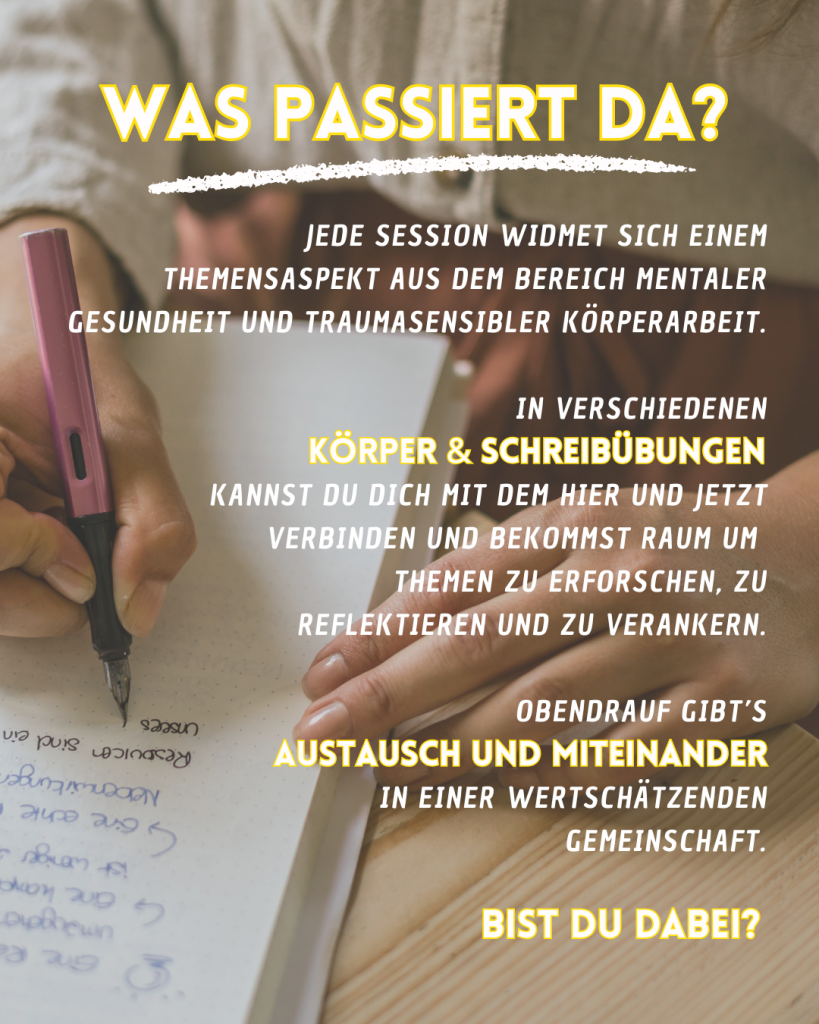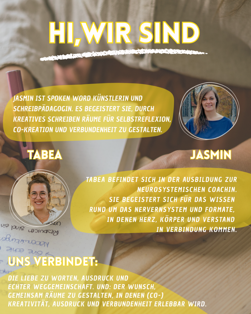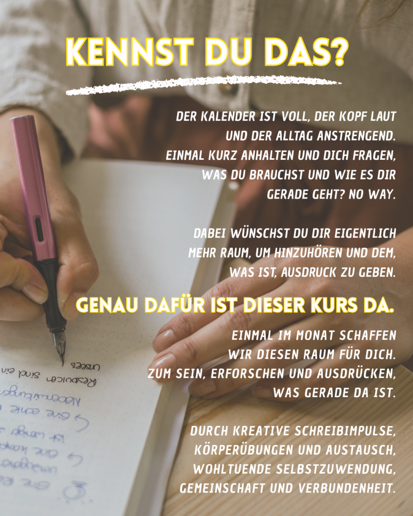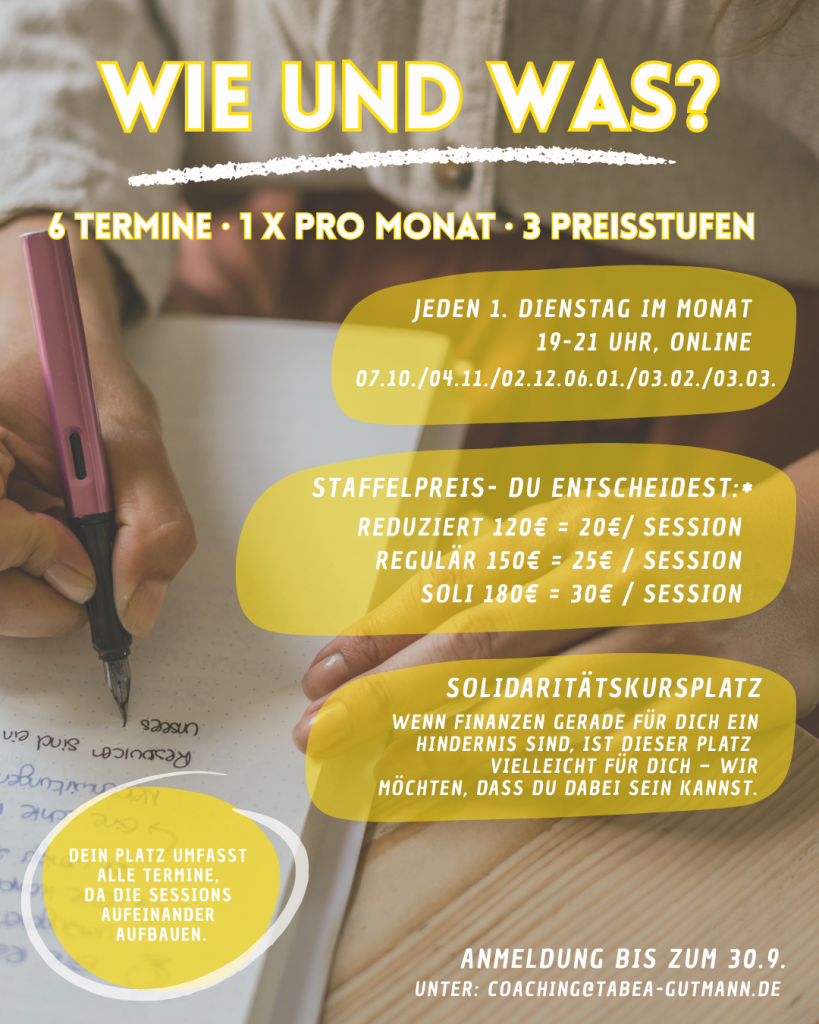 Unser Angebot für euren Herbst und Winter: Ab Oktober bieten Tabea Gutmann (neurosystemische Coach in Ausbildung) und ich eine neue 6-teilige Schreibworkshopreihe an, um gut durch die dunkle Jahreszeit zu kommen.